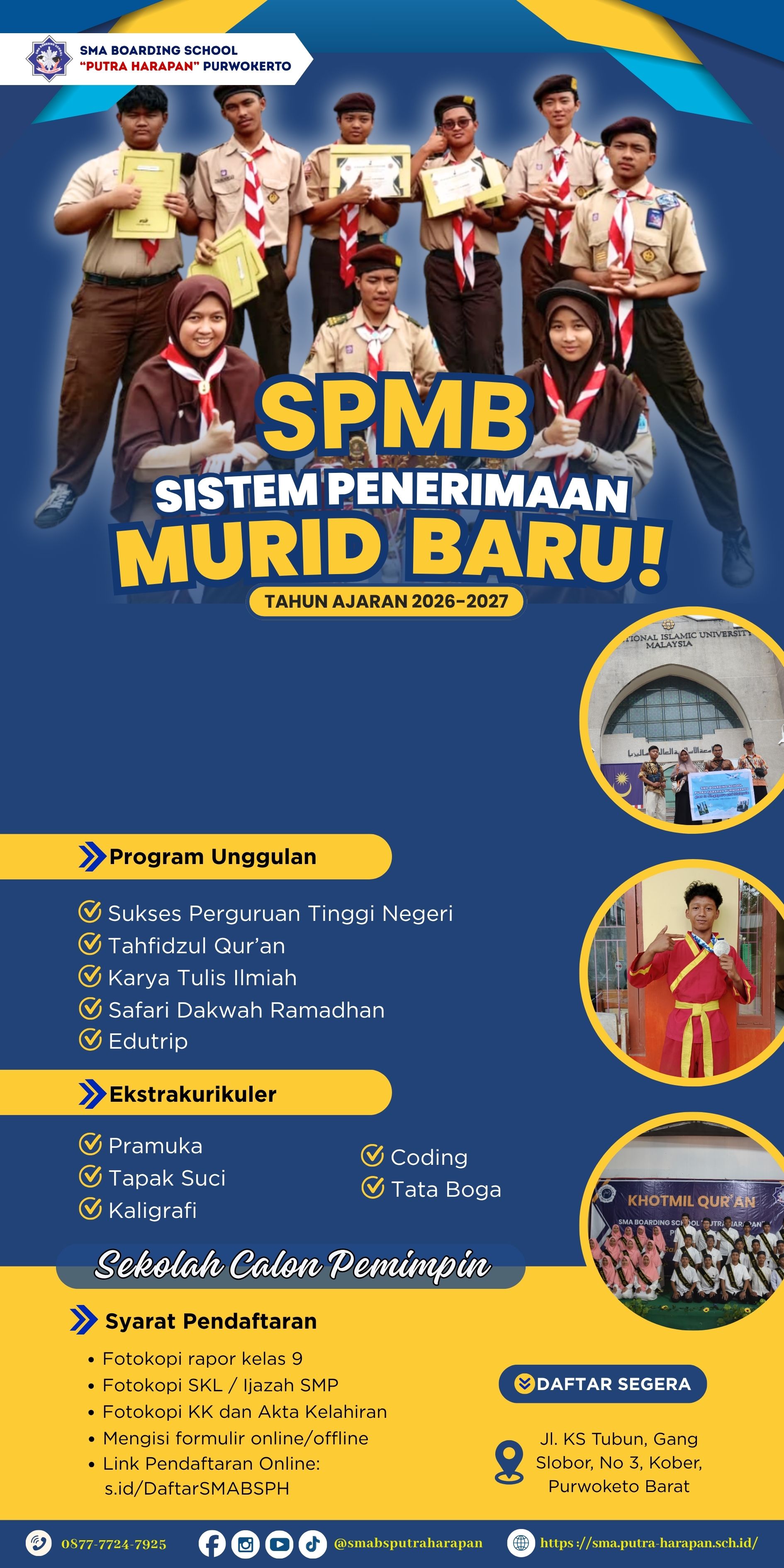 Sebagai salah satu lembaga pendidikan di Kabupaten Banyumas-Jawa Tengah, SMA Boarding School Putra Harapan Purwokerto bekomitmen untuk mengembangkan dan memajukan mutu pendidikan tiada henti. Didukung dengan sarana dan fasilitas yang lengkap, kami yakin SMA Boarding School Putra Harapan Purwokerto adalah tempat yang tepat untuk mendidik dan mempersiapkan generasi di masa mendatang yang bertaqwa kepada Allah SWT, berilmu, beramal dan akhlaq mulia.