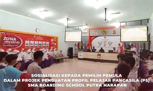 Siswa SMA Boarding School Putra Harapan Purwokerto mengunjungi kantor KPU Banyumas dalam rangka Project Penguatan Profil Pelajar Pancasila. Pemateri kali ini dari Divisi Sosdiklih, Parmas, dan SDM KPU Kabupaten Banyumas, Yasum Surya Mentari. Pada sesi ini, kami diajarkan tentang waktu pemilihan caleg DPR & DPRD Provinsi, kabupaten/Kota, dan pemilihan Capres dan Cawapres. Selain itu kami juga diajarkan cara berdemokrasi, azaz-azaz pemilu, tata cara dan syarat menjadi peserta pemilih daam pemilu. Dan tentunya kami juga diberikan informasi nama - nama calon pemilu pada masing-masing partai. Adanya kegiatan ini diharapkan dapat menambah wawasan para siswa, dan bisa diterapkan ilmunya ketika sudah waktunya menjadi pemilih pemilu.