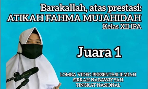 Kami atas nama keluarga besar SMA Boarding School "PUTRA HARAPAN" Purwokerto, mengucapkan syukron wa jazakumullah khairan katsiron kepada asatidz/ah, bapak/ibu wali murid, siswa/i SMA Boarding School PUTRA HARAPAN Purwokerto dan teman-teman semua yang tidak bisa kami sebutkan satu persatu atas doa dan supportnya untuk ananda Atikah Fahma Mujahidah, siswi kelas XII IPA yang telah berhasil menjadi JUARA 1 dalam lomba Video Presentasi Siroh Nabawiyah tingkat Nasional, membawakan presentasi mengenai "Perang Khandak".